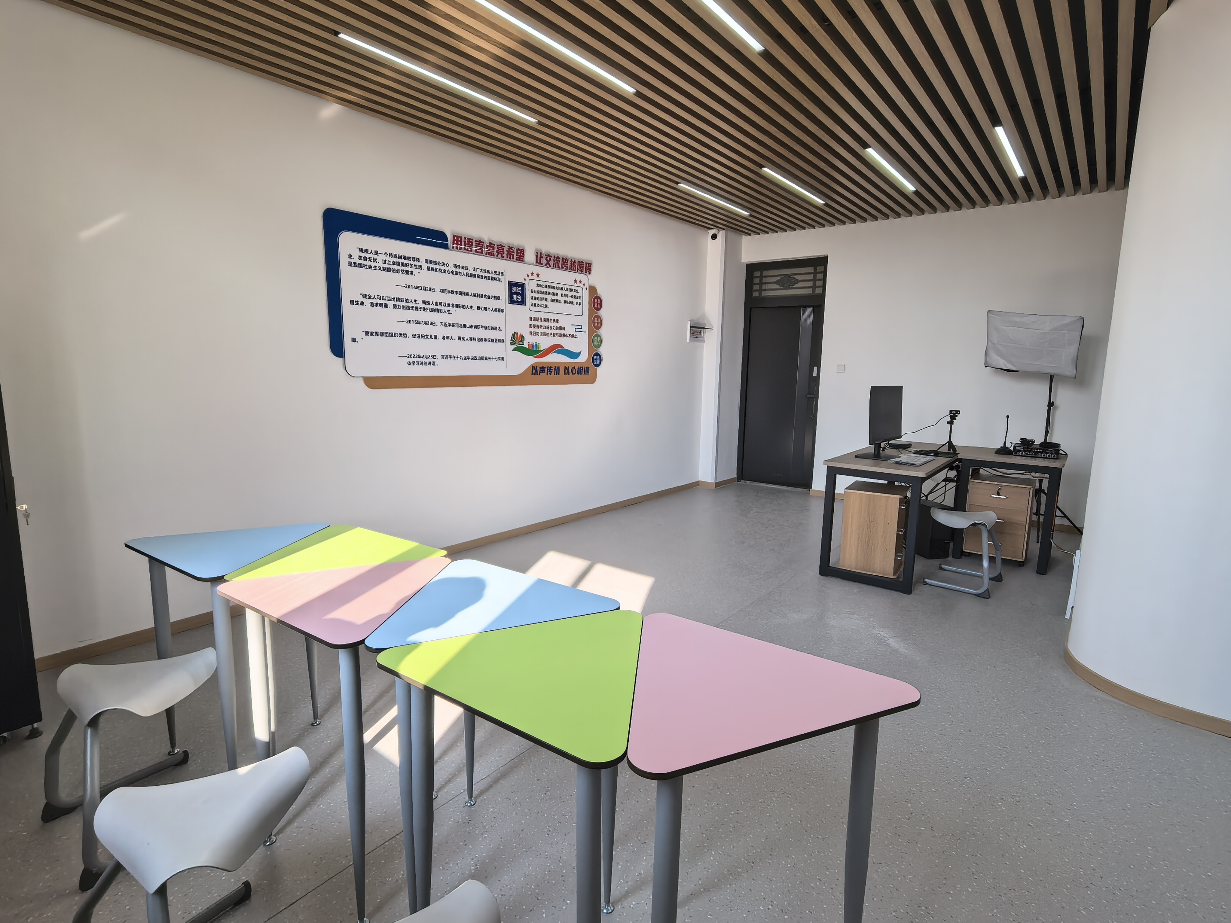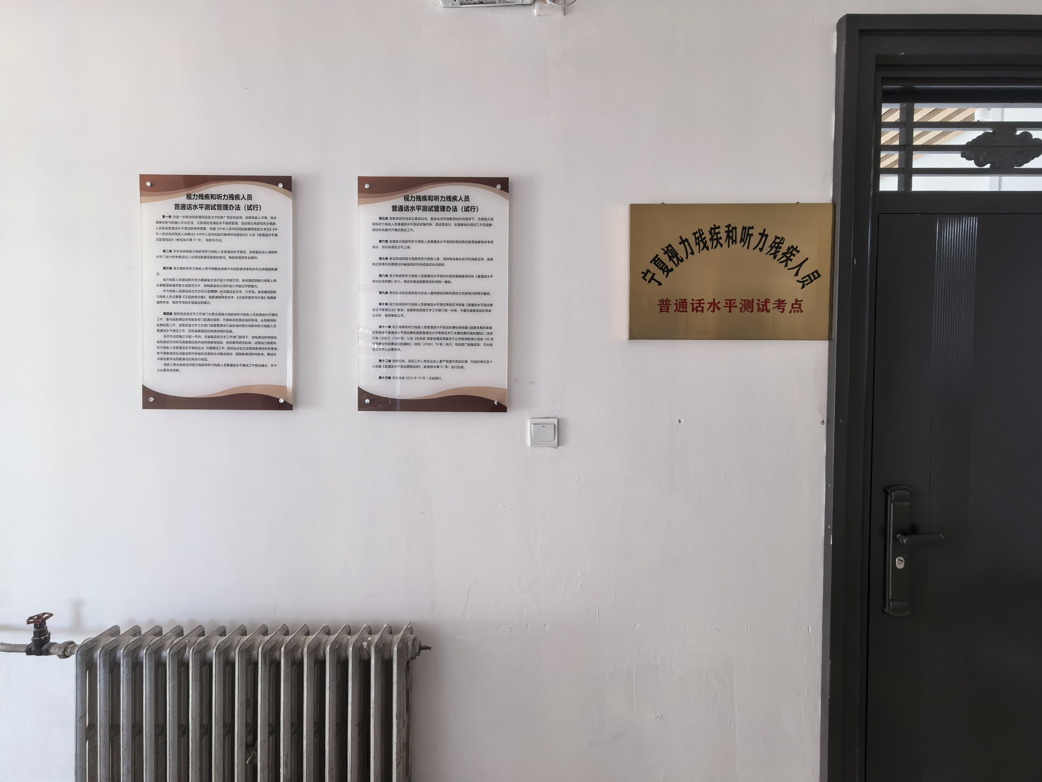 为深入贯彻落实习近平总书记关于促进残疾人事业发展的重要讲话精神,进一步推动国家通用语言文字的推广普及和应用,充分适应视力残疾和听力残疾人员参加普通话水平测试的特殊需求,以更好地保障残疾人平等、充分、便捷地参与和融入社会生活。根据2023年教育部办公厅和中国残联办公厅联合印发的《视力残疾和听力残疾人员普通话水平测试管理办法(试行)》和自治区教育厅办公室下发的《关于在宁夏社会人员普通话测试站增设自治区视力残疾和听力残疾人员普通话水平测试考场的函》的有关规定,由宁夏大学负责建设的“自治区视力残疾和听力残疾人员普通话水平测试考场”近期建成。